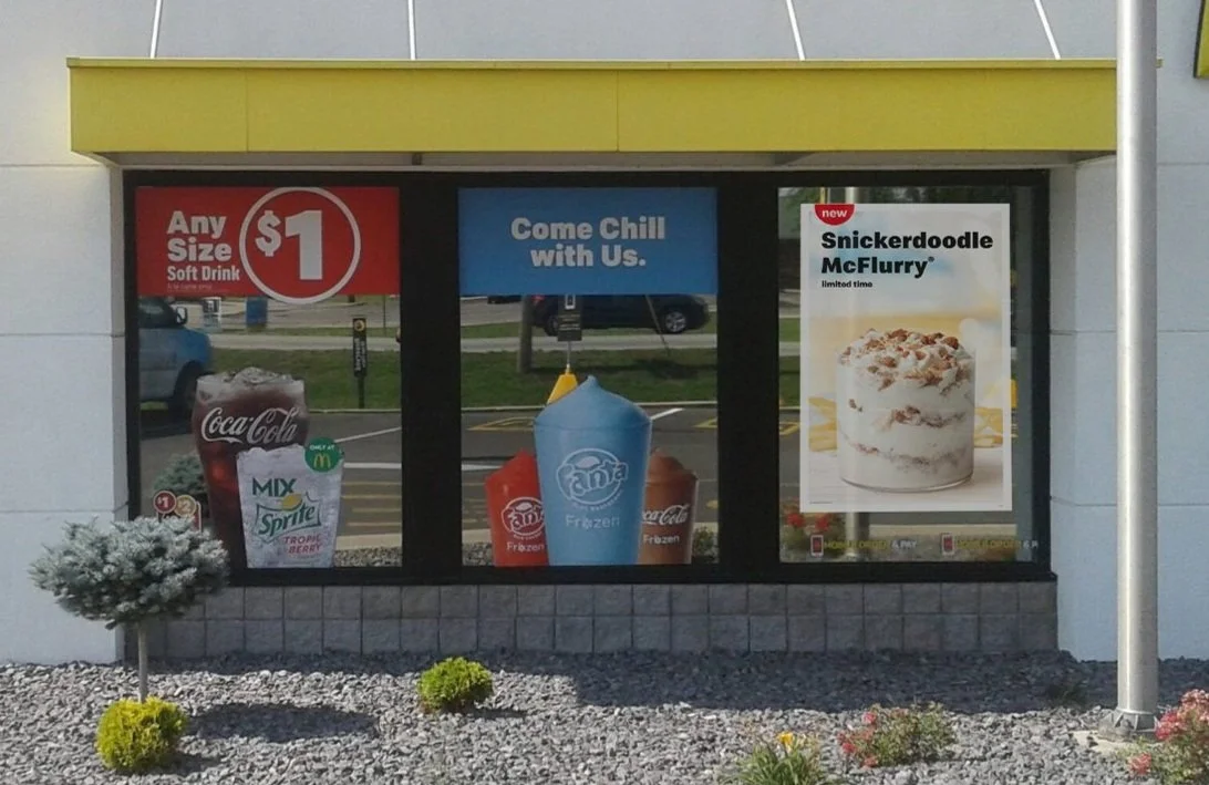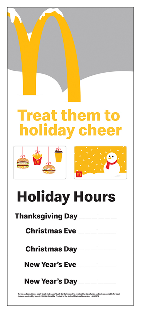 For the 2019 Holiday McFlurry launch, we developed a concept and signage adaptable for both summer and winter promotions. Drawing inspiration from McDonald's brand gold and light blue, we created POS and window signage that captured the warmth of summer and the festive feel of the holidays.